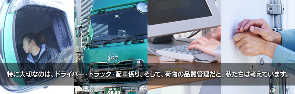 特に大切なのが、ドライバー・トラック・配車係り、そして、荷物の品質管理だと、私たちは考えています。例えば、食品を汚いトラックで運べば、お客さまの印象が悪くなります。また、綺麗なトラックで、荷物の管理も万全だとしても、ドライバーが無愛想であれば、お客さまは荷物をたいせつに扱われているのかどうか不安になります。もし、それらのバランスがしっかり管理されていたとしても、会社として、お客さまの要望に応えられなかったり、あるいは、お客さまの要望に応えたいがために無理な配車をすれば、結果、大きな事故につながることになります。